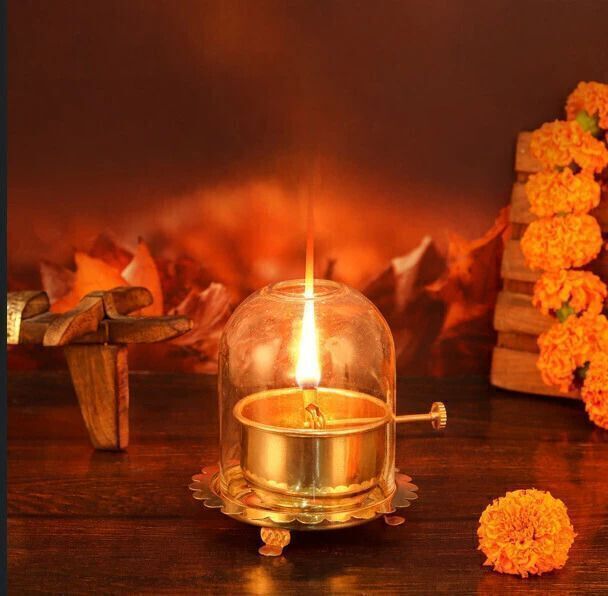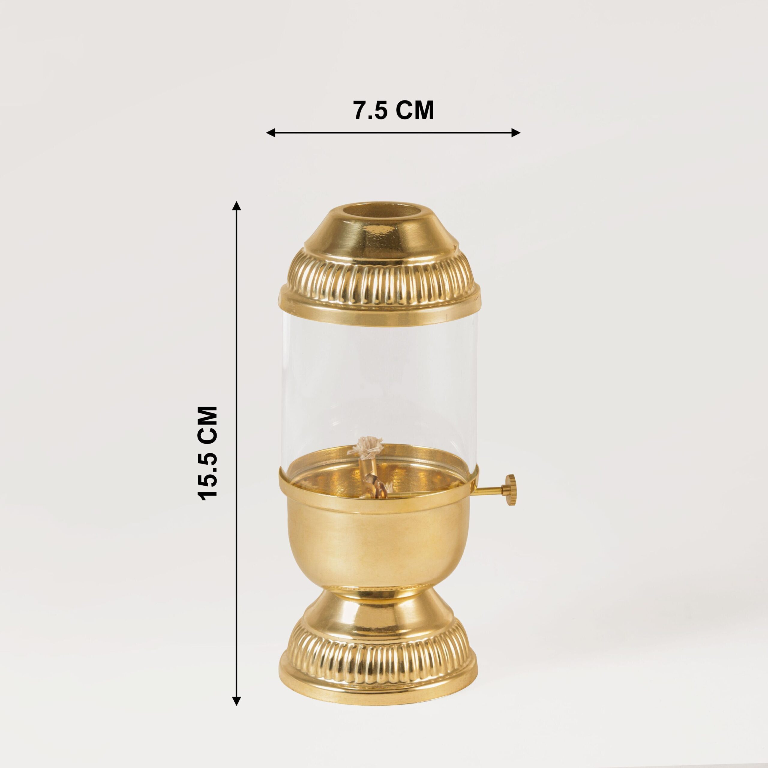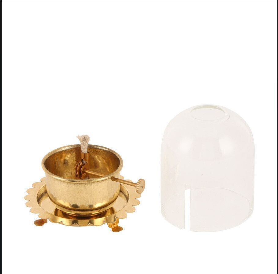 4 INCH BRASS AKHAND JYOT DIYA |125 ml OIL CAPACITY Brass, Borosilicate Glass Table Diya (Height: 4 inch)