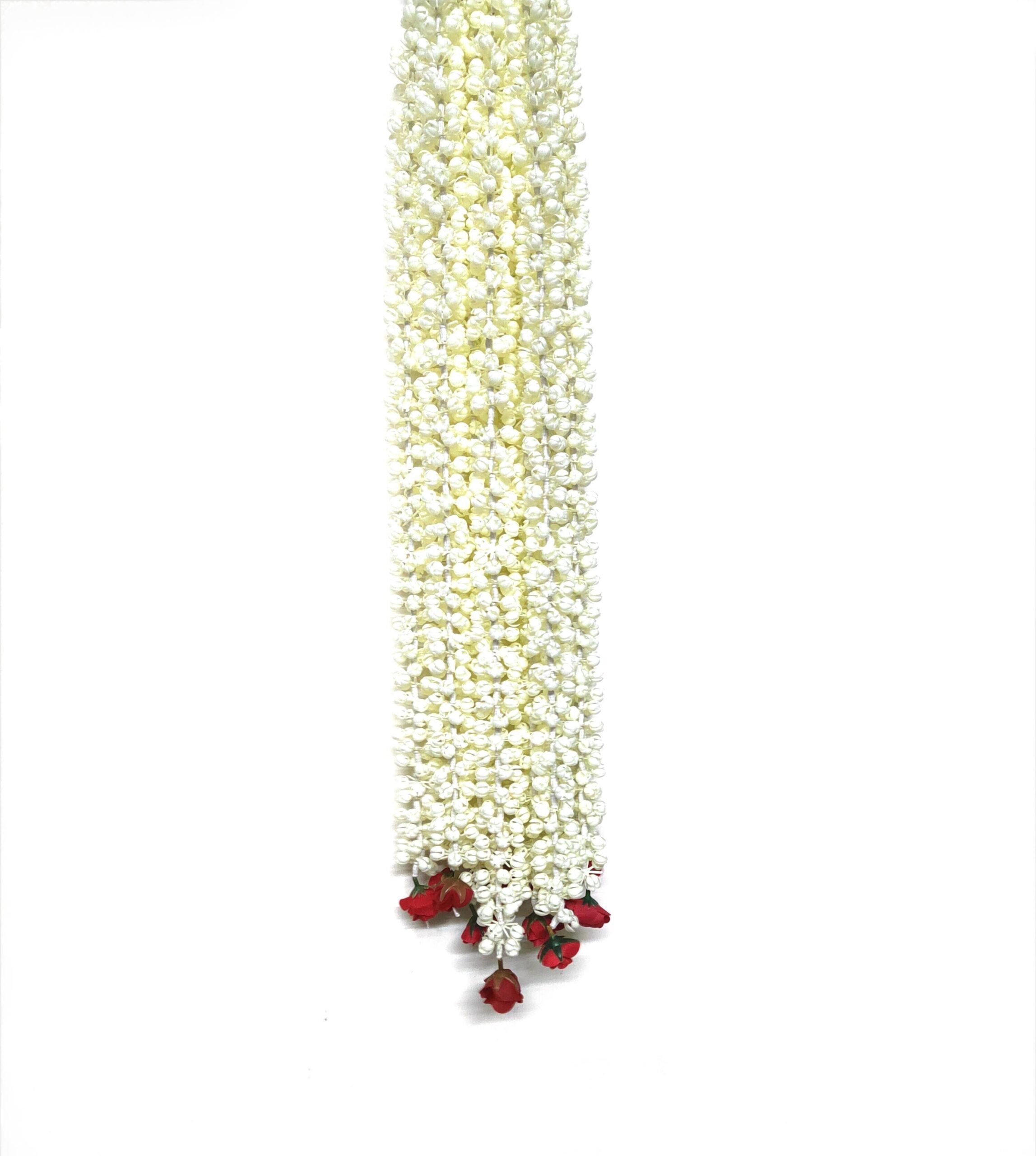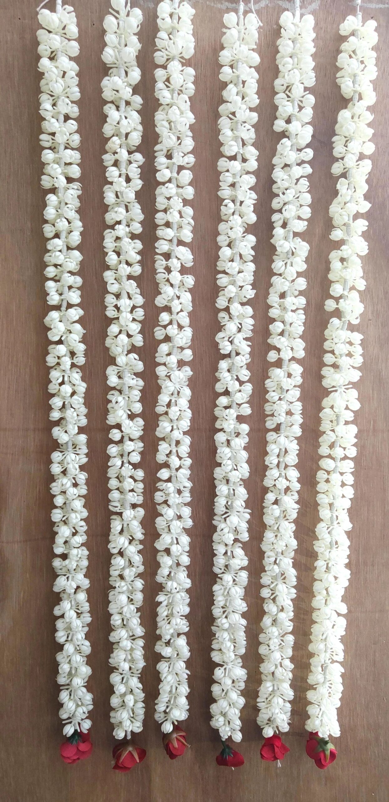Artificial Jasmine Buds & Rose Strings for Decoration Approx 2.5 ft Pack of 6 White, Red Jasmine Artificial Flower (30 cm, Pack of 6, Vine & Creepers)