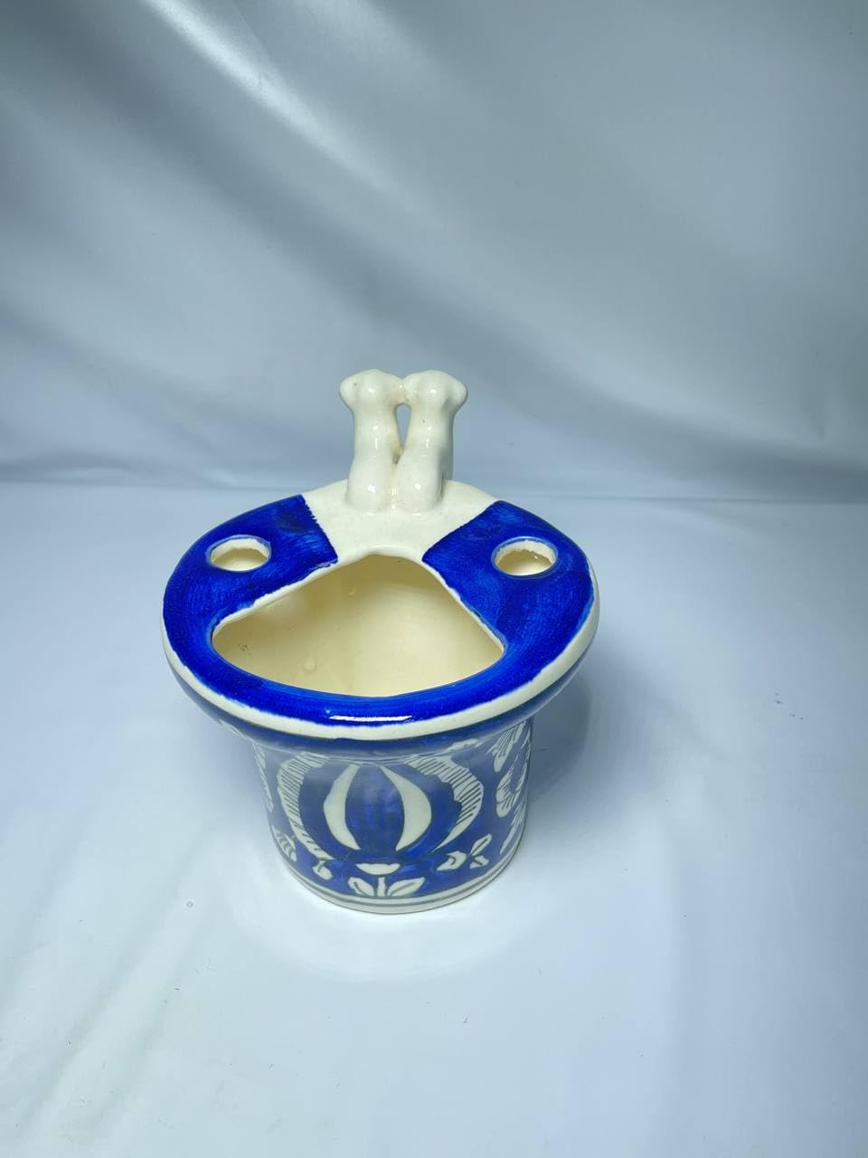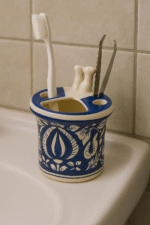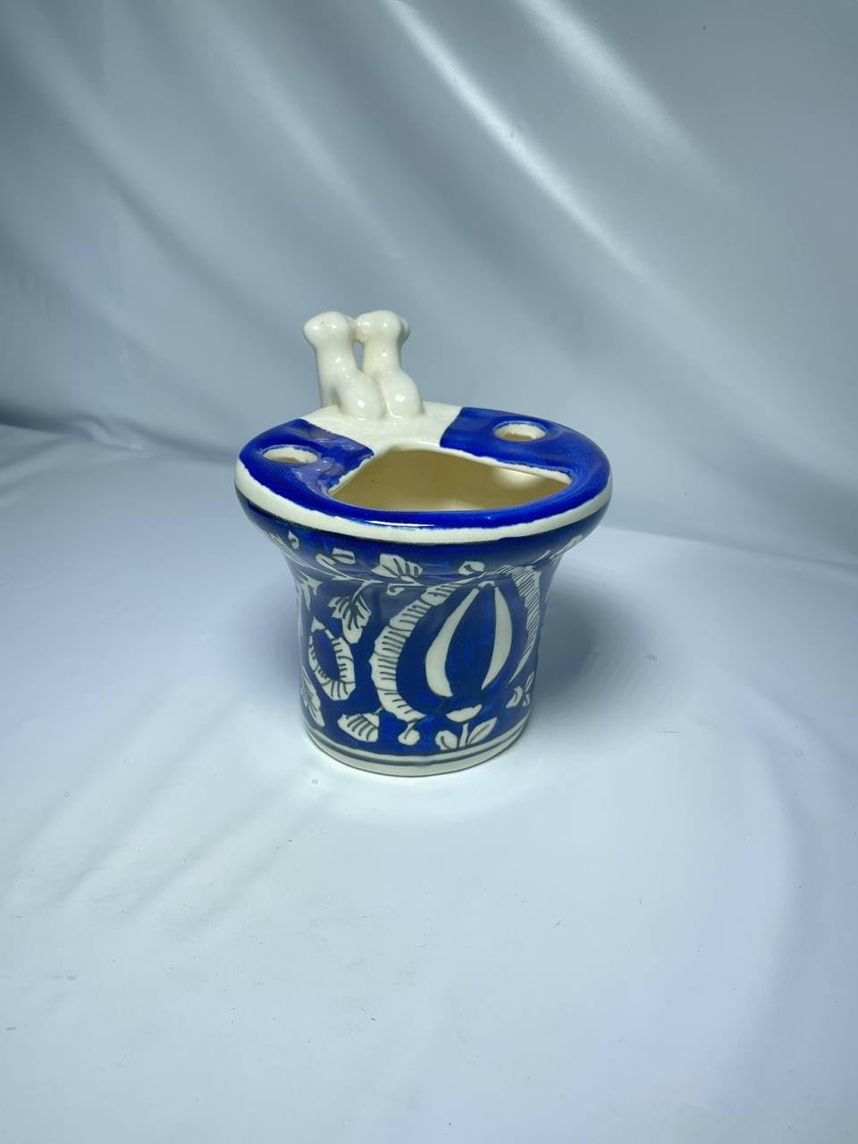 TRADITIONAL DESIGN: Beautifully handcrafted ceramic toothbrush holder featuring classic blue and white floral patterns, perfect for adding an elegant touch to your bathroom decor