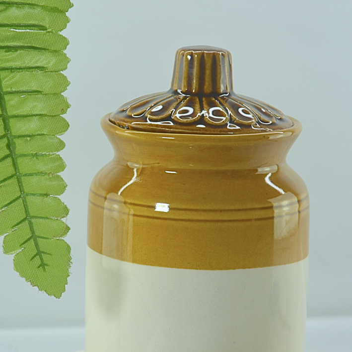 Name : Ceramic Homeware Two-Tone Storage Jar, Mustard Yellow and Cream, 1 Litre Capacity, Decorative Lid