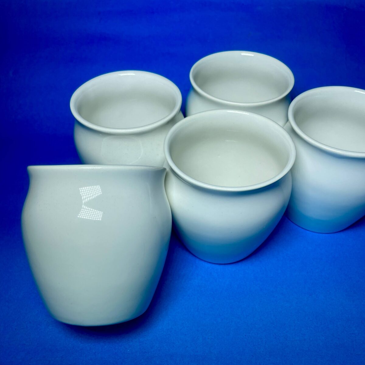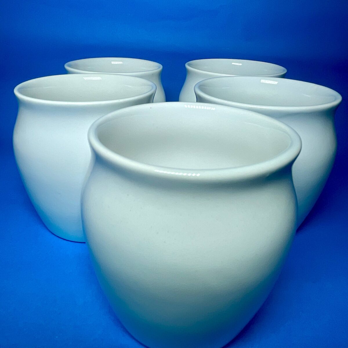 Be the first to review “Classic White Ceramic Cups, Handleless Design, Set of 5”
