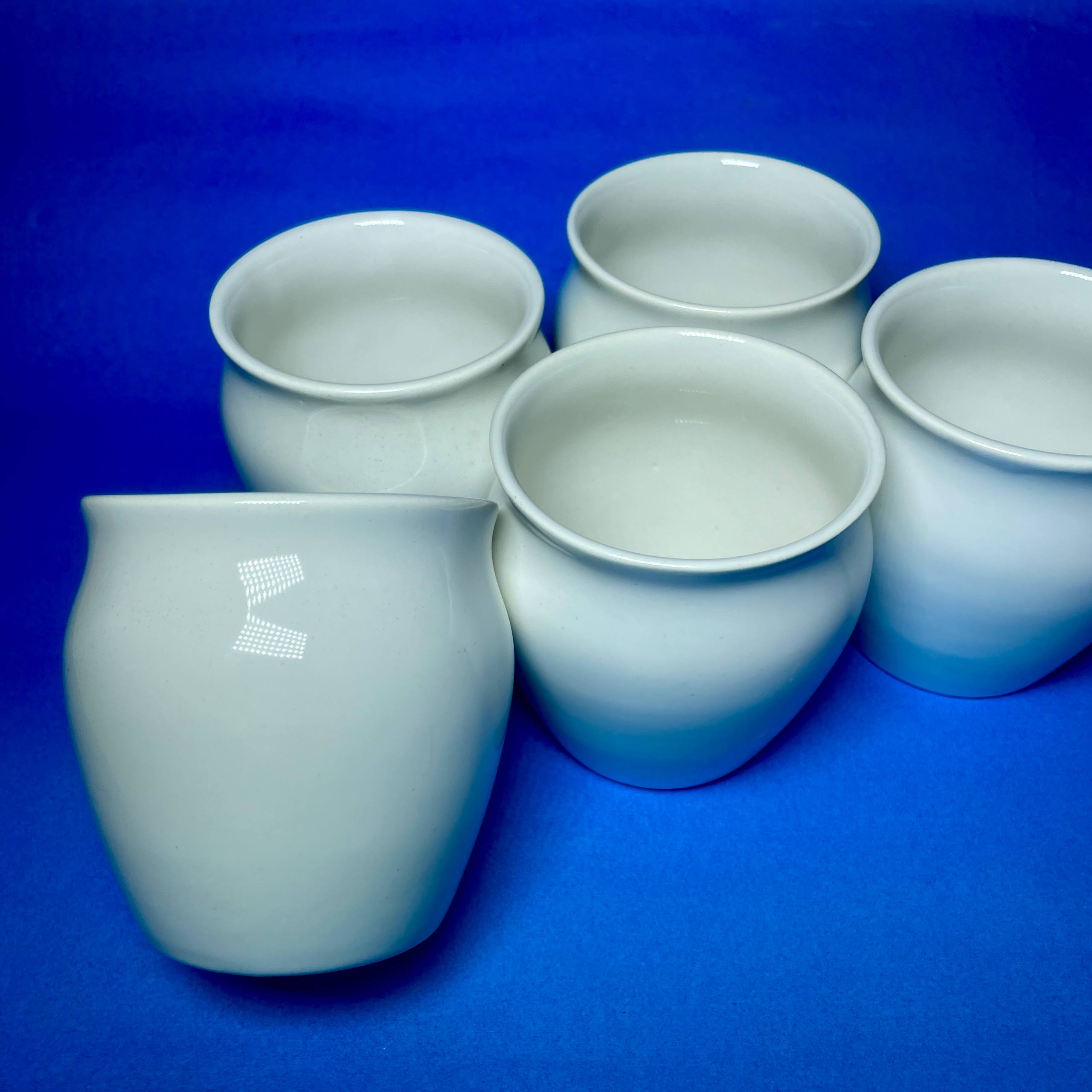 Ceramic Beverage Service Set, 6-Piece, White Cups and Creamer, Modern Minimalist Design