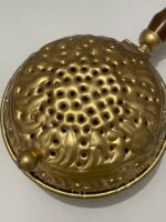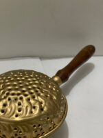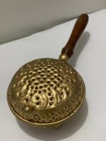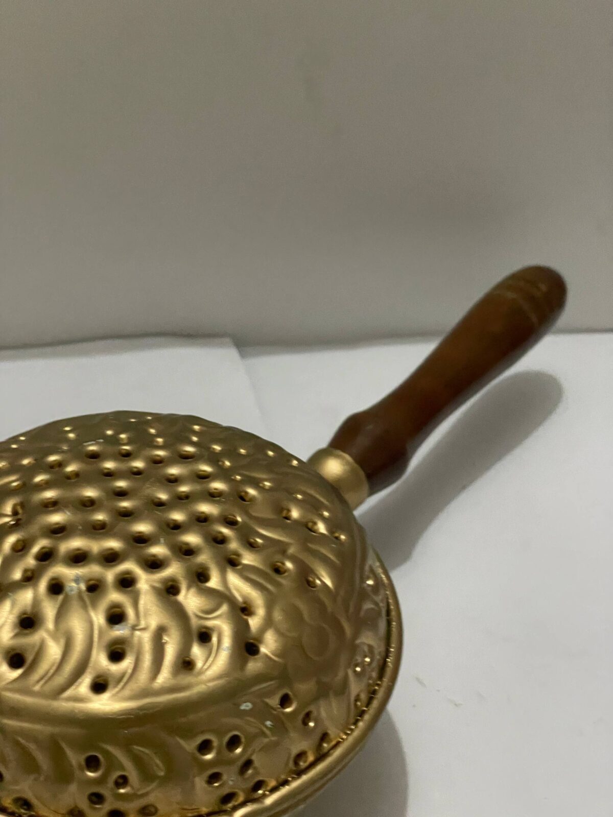 TRADITIONAL DESIGN: Beautifully crafted brass incense burner featuring an intricately patterned perforated lid and comfortable wooden handle for elegant smoke diffusion