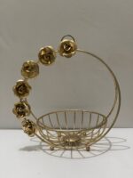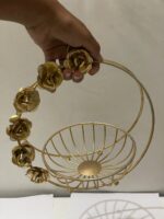 Be the first to review “Decorative Gold Metal Basket with Rose Handle, Round Floral Display Stand, Elegant Home Decor” Cancel reply