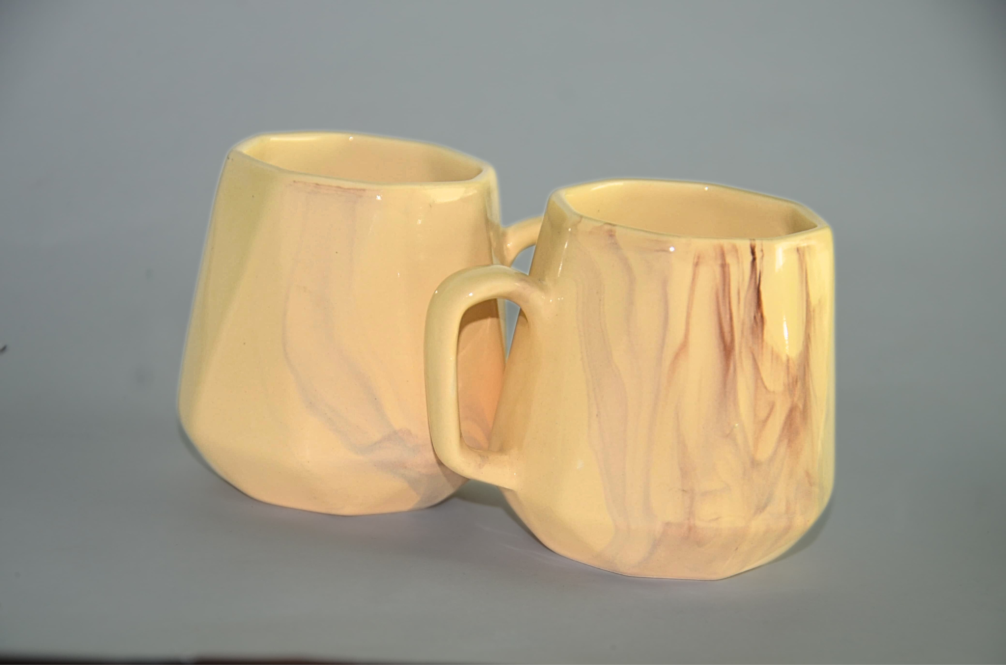 Bring a warm, cozy charm to your tea time with this handcrafted yellow ceramic tea set featuring a glossy marbled finish. The set includes a uniquely shaped ceramic kettle with lid and six matching mugs, all designed with a subtle brown marble swirl that adds a natural, artisanal touch.