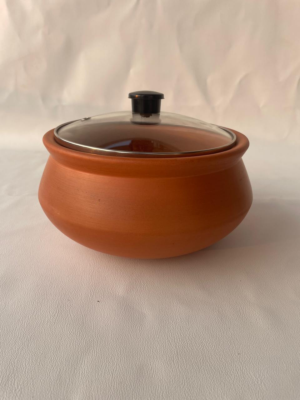 TRADITIONAL DESIGN: Round-shaped earthenware pot with curved sides and wide mouth for convenient cooking and serving