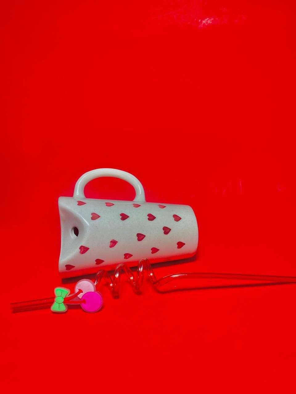 Be the first to review “Valentine’s Day Ceramic Coffee Mug with Red Hearts Pattern, White, with Decorative Charms”