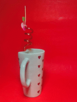 • DESIGN FEATURES: White ceramic mug adorned with charming red heart pattern and decorative hanging charms, perfect for Valentine’s Day celebrations